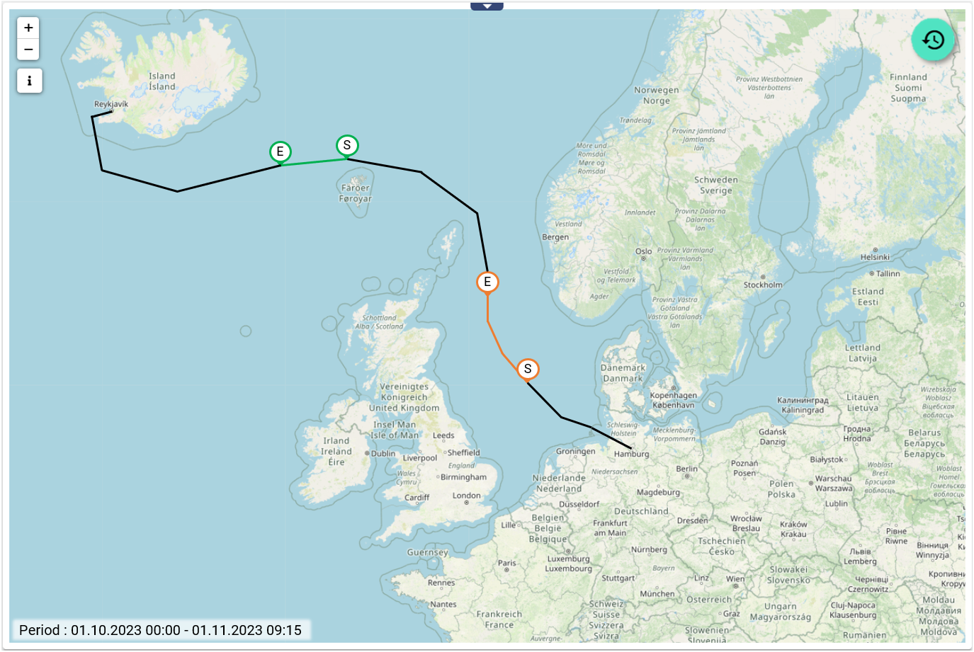 1.) With the brand new Widget: Event Pathway Map, the movement history of objects can now be displayed and analyzed on the map. In addition, signal values can be recorded event-based at event start S and event end E. This event history can be highlighted in color on the map. For example, the process of bilge water disposal (dumping) can be seamlessly mapped and verified for each ship.