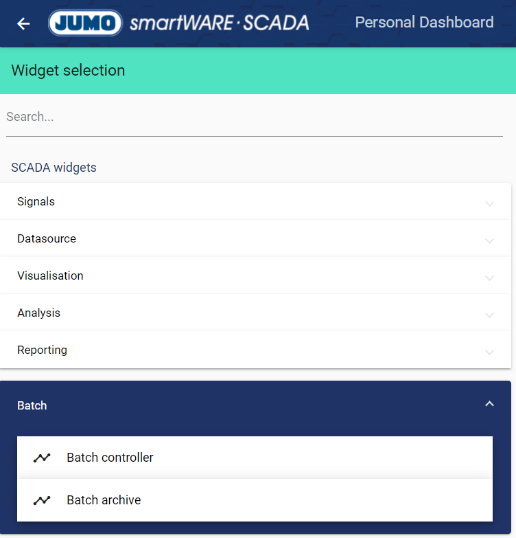 2.) Batch functionality available on BETA version of JUMO smartWARE SCADA: Two new widgets and a new configuration unit introduced. Available on request through SCADA update from JUMO.