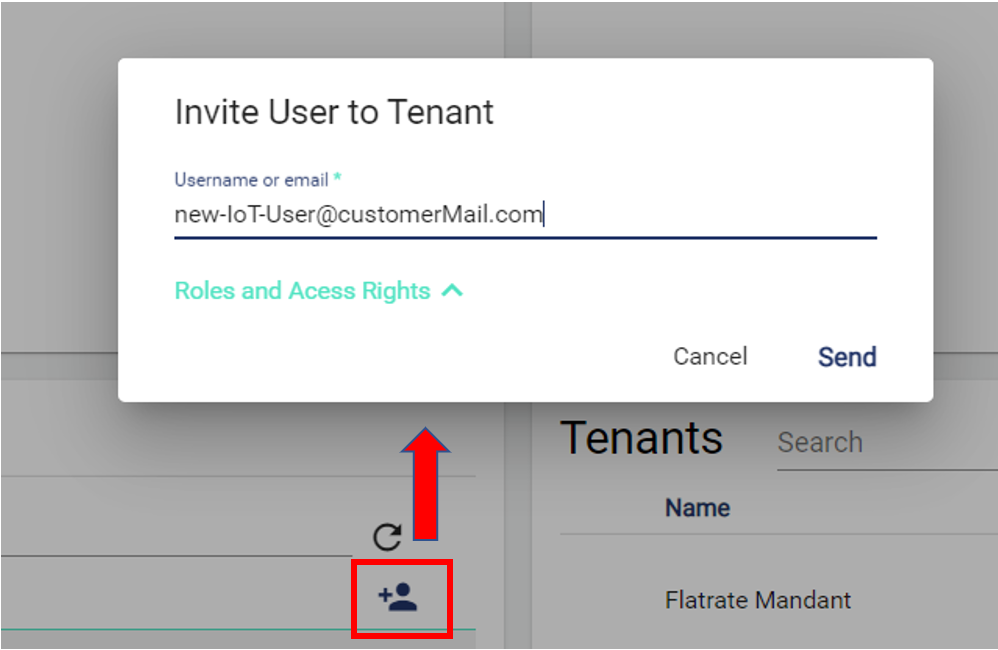5.) Invitation of users who are not registered within the IoT platform is now possible. The person who is invited willthen receive an email from the system with the possibility to log in within 12 hours. If this time expires, he can still access the platform via the forgotten password functions and his email account to follow the invitation.