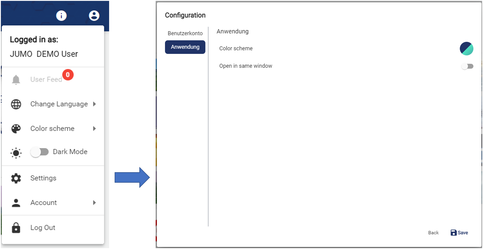 4.) Settings in the user profile extended. You can now set whether the application should open in the same browser tab or in a new one.