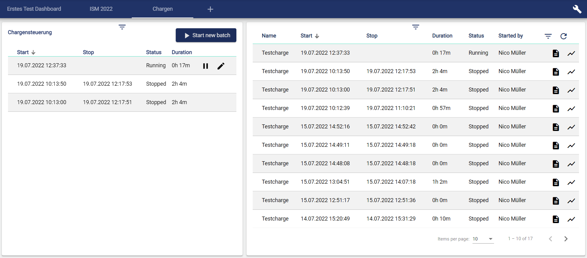 New widget: Batch control → Start, stop, monitor batches and enter validated batch metadata.
