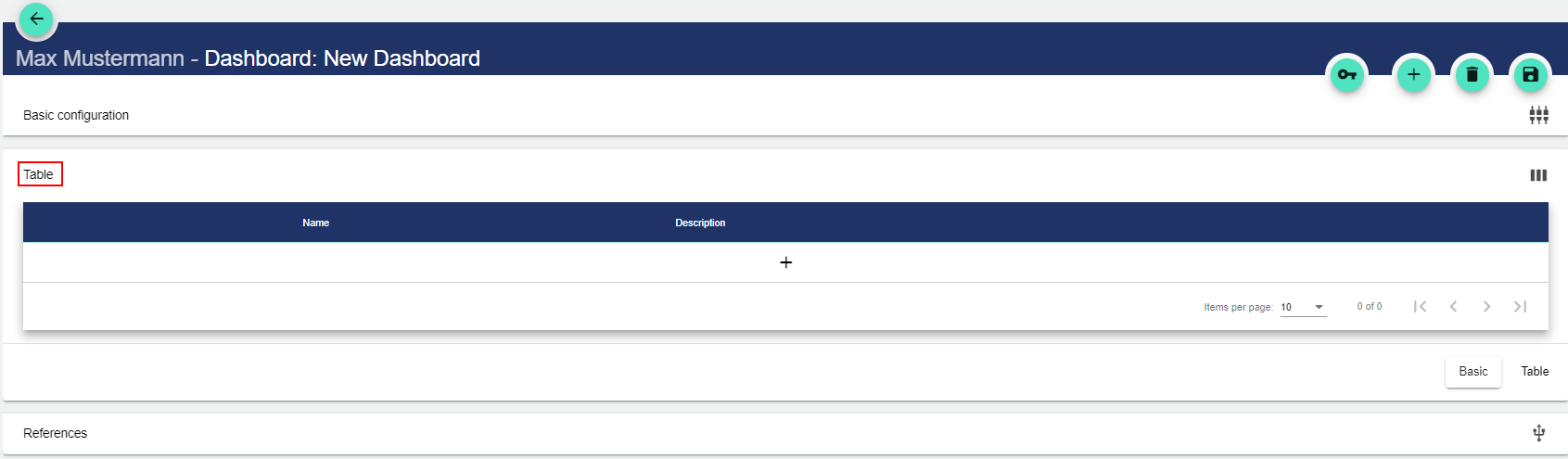 Assign a name to the Dashboard in the Basic Configuration. The Description field is optional. The Dashboard can also be created as an "entry-level" dashboard. This means that you always access the other information via this Dashboard.