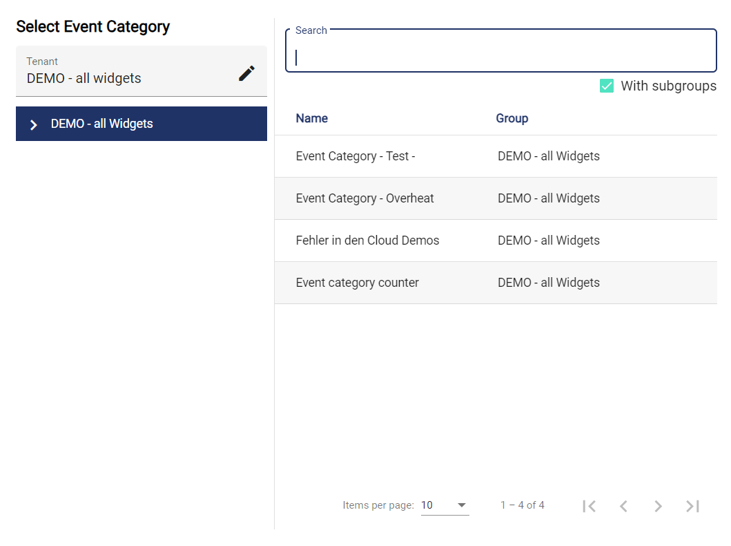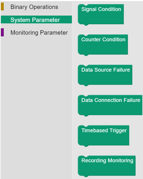 Generates Events based on Conditions, Faults (Data Source, Data Connection, Signal), Monitoring and Timebased Triggers. The Event can be generated by one or more condition(s), etc., which can be logically linked to each other using the Editor. Events can be managed using the Event Management Widget.