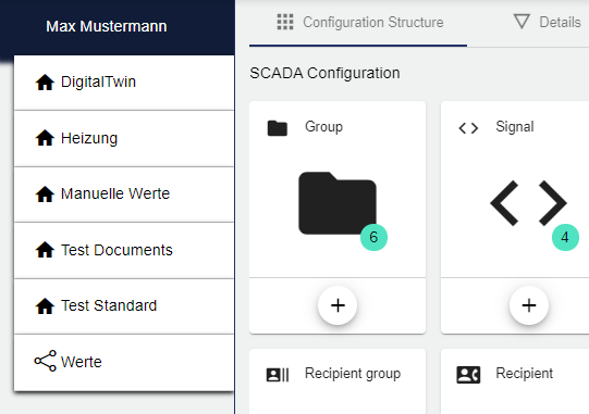 A Group structures the Client. The structure defined in the configuration also applies to Dashboards and Operations. Each Group contains all configuration elements (Configuration Structure, Details, Access Rights)