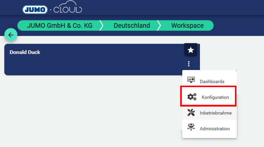 Under Configuration and Cloud Gateway in the "JUMO Web Cockpit" of the variTRON device, enter the device ID and password from the JUMO Cloud.