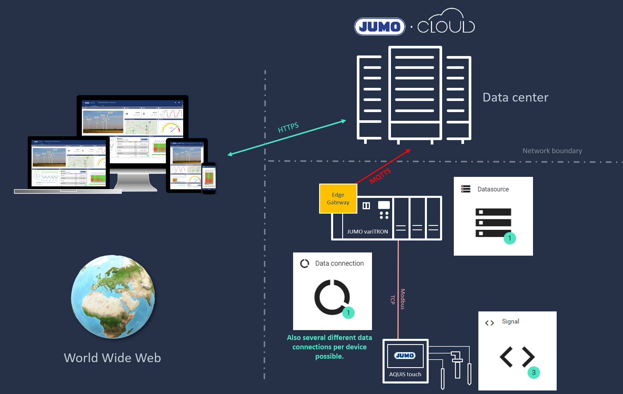 The prerequisite is a JUMO variTRON device with an Internet connection.