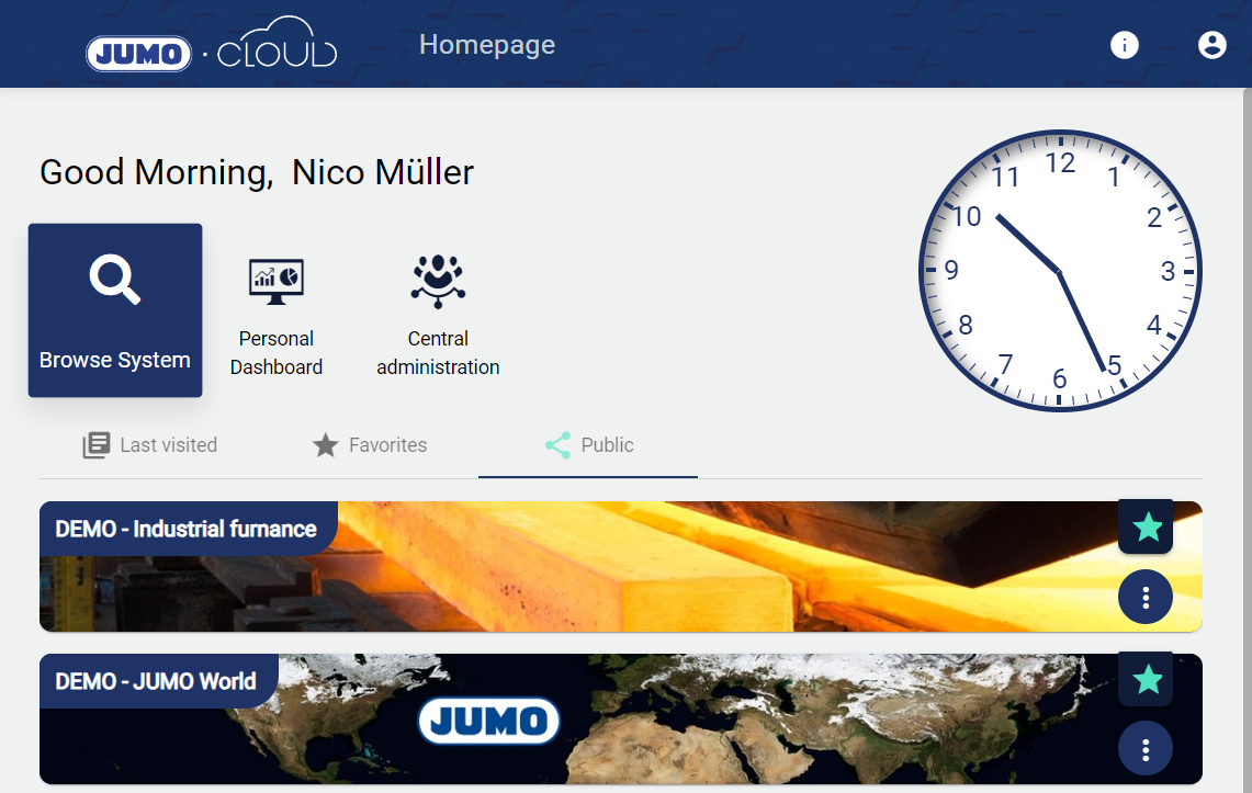 Here you can see how the device from the JUMO variTRON family is connected to the JUMO Cloud and how device information is displayed in the Dashboard.