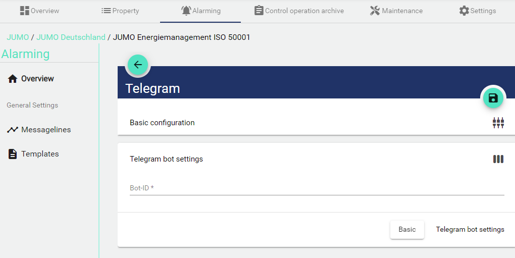 Own alerting services can be configured within a tenant. Optionally, the set service can also be inherited by sub-tenants.