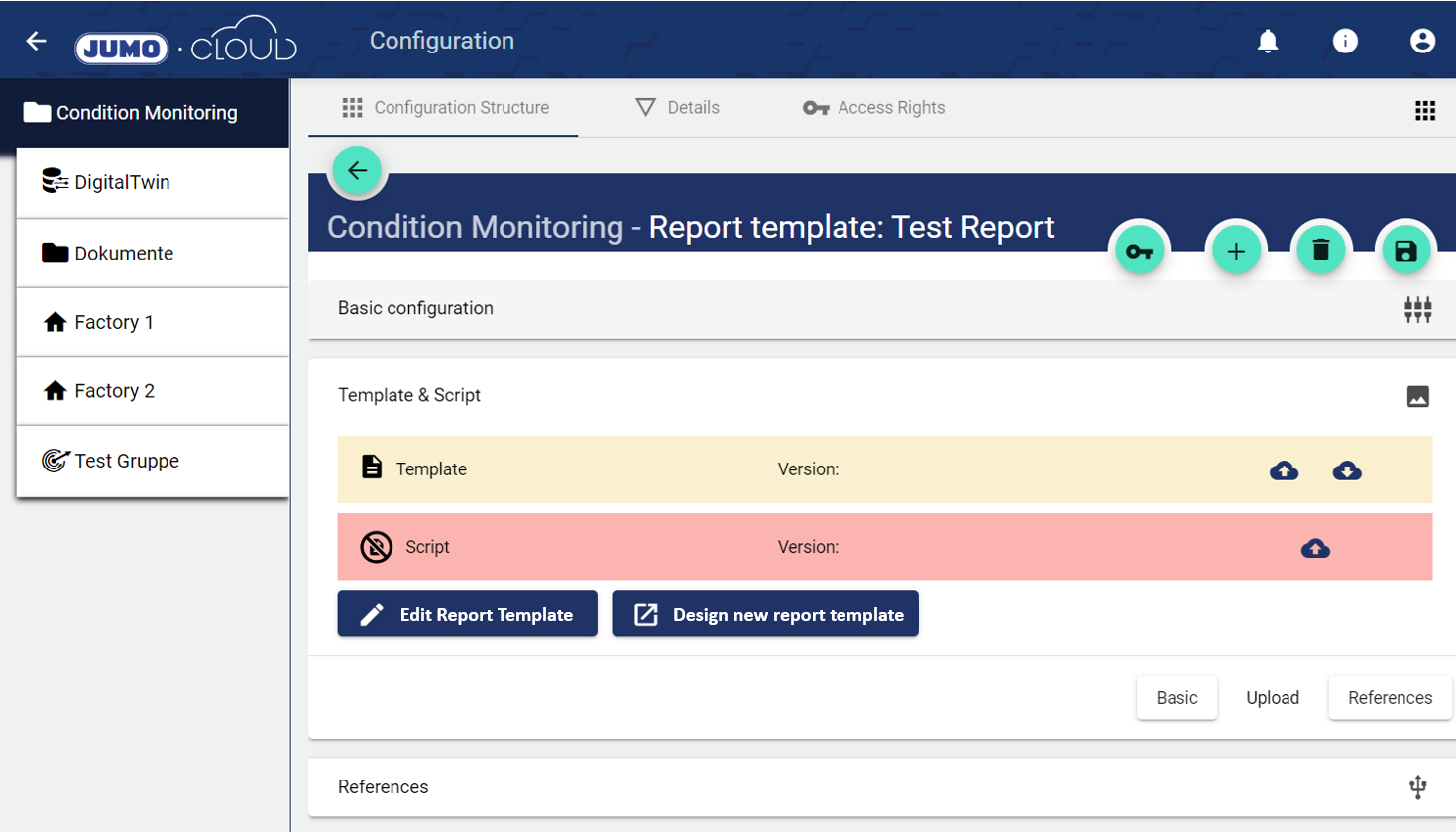In the Basic Configuration of the Report Template, assign a suitable title. The Description field is optional. The "Group" field shows the Group in which this Report Template was created. The path is generated automatically by the system.