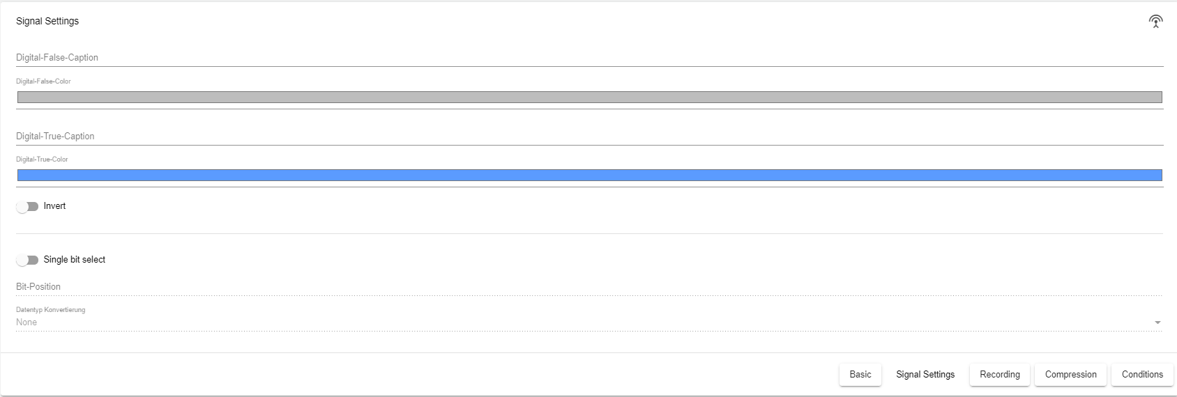 The signal settings depend on the signal type. This item is not available for the universal input / universal output type.