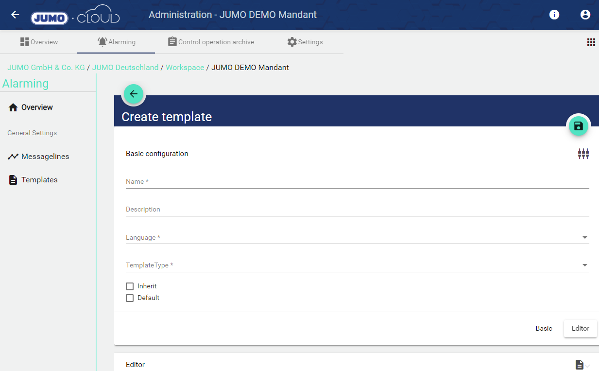 Via the template settings you have the possibility to use your own alarm texts per language for existing or own Messagelines.