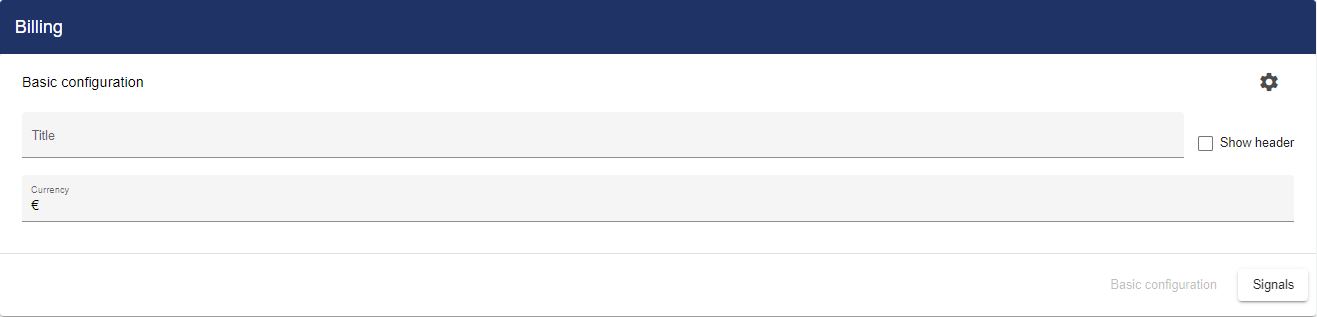 In the Basic Configuration for Billing, assign a suitable title. The header can be displayed by selecting the check box. The system automatically fills the Currency field with "€". If another currency is required, the field must be changed accordingly.