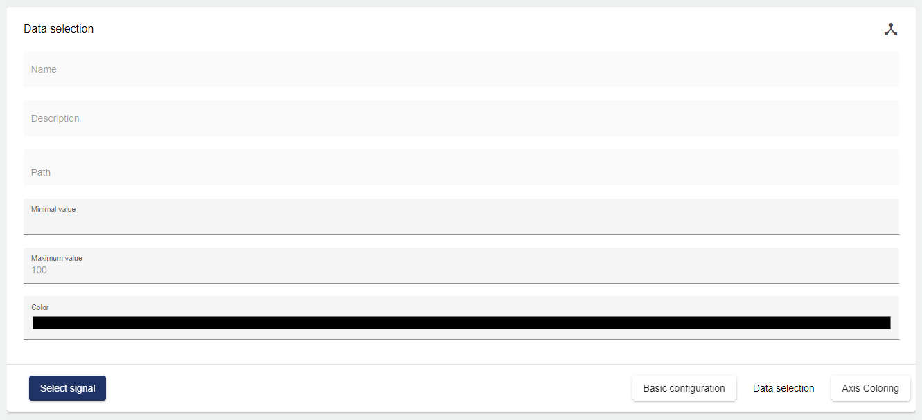 Under the "Axis coloring" tab, certain areas of the axis can be colored differently. The "From" and "To" fields are used to limit the range to be colored. The "Color" field allows you to select and choose the appropriate color.