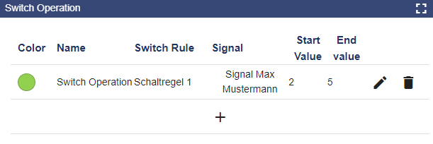 The "Switching Operations Planning" widget is used to create switching operations for an associated Scheduler. This window can also be found in the configuration of the "Scheduler" widget. You can use this widget to flexibly customize the switching operations on the Dashboard. This provides the added value of not having to navigate to the "Scheduler" widget configuration for each adjustment. To create a switching operation, either an analog or a digital output signal is required.