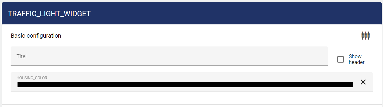 Assign a suitable title in the basic configuration of the widget. The header can be displayed by selecting the checkbox. The color of the surrounding housing can also be adjusted.