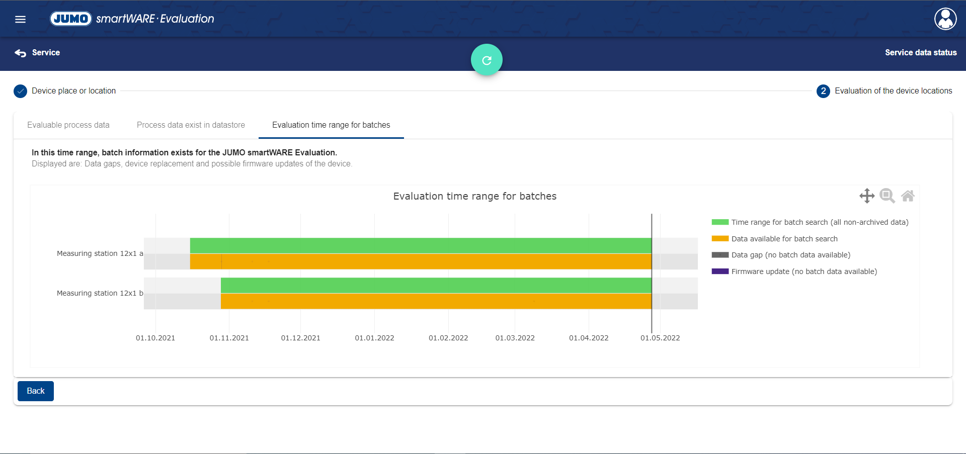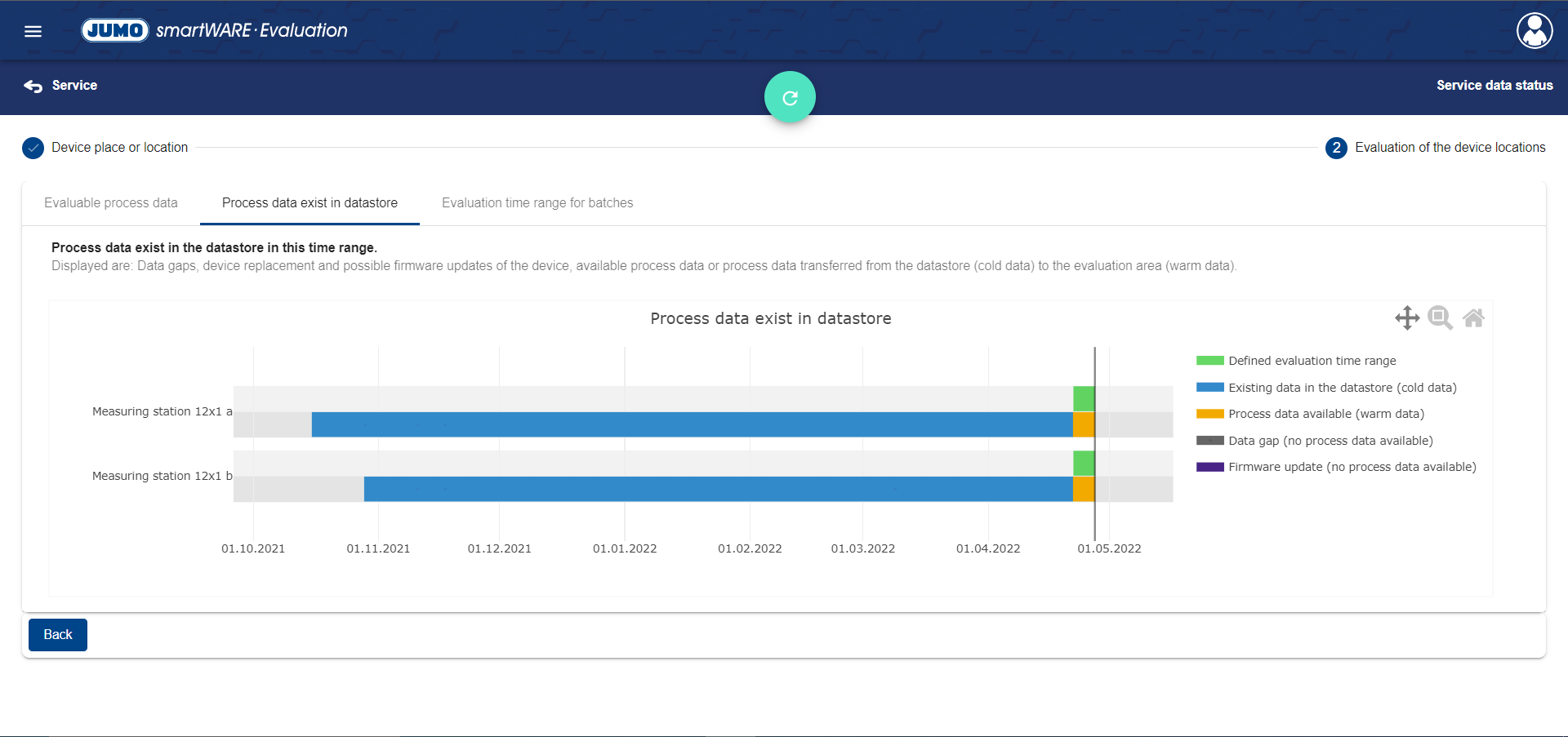 In the Data Status area, the status of the defined time ranges is mapped for each device location.
