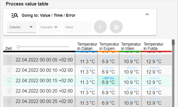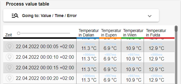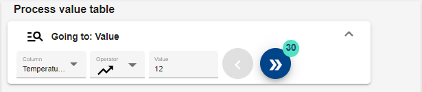With the help of the "Going to" function, it is possible to jump to a user defined value within the process value table.