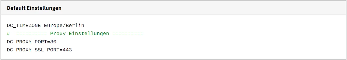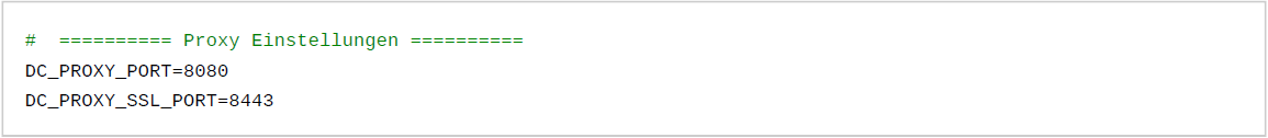 Now enter the parameters you want to overwrite in the .env file and save the file with Ctrl-O and 'Enter'. Exit the Nano Editor with CTRL-X. Here is an example of the content in case you need to change the proxy ports, since they may already be used by another application.