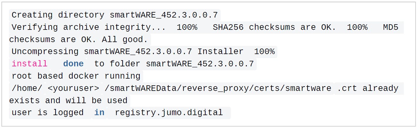 Change to the newly created directory ~/smartWARE_452.3.0.5/ and start the script ./