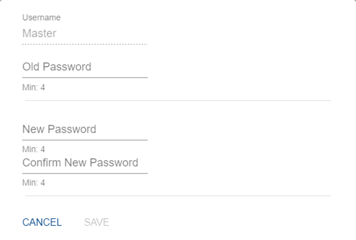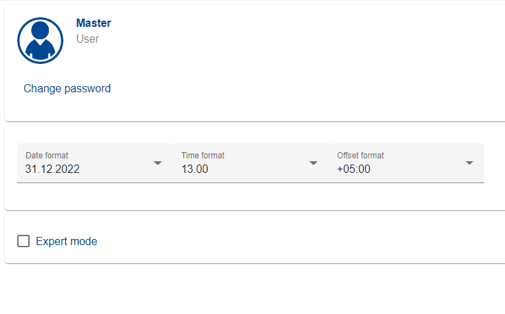 Clicking Change password opens the mask with the option to change the password for the account with which the user is logged in.
