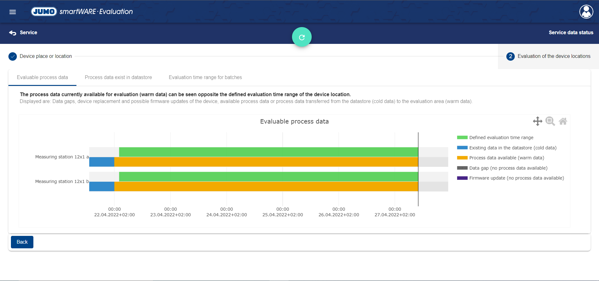 In the Data Status area, the status of the defined time ranges is mapped for each device location.