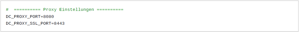Now enter the parameters you want to overwrite in the .env file and save the file with Ctrl-O and 'Enter'. Exit the Nano Editor with CTRL-X. Here is an example of the content in case you need to change the proxy ports, since they may already be used by another application.