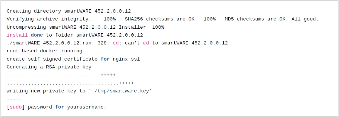 Change to the newly created directory ~/smartWARE_452.3.0.5/ and start the script ./