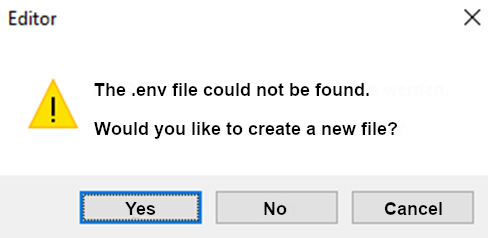Since the .env file did not previously exist, Notepad asks whether you want to newly create this file.