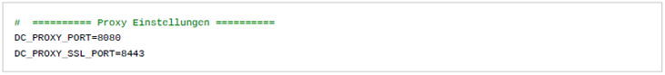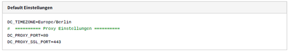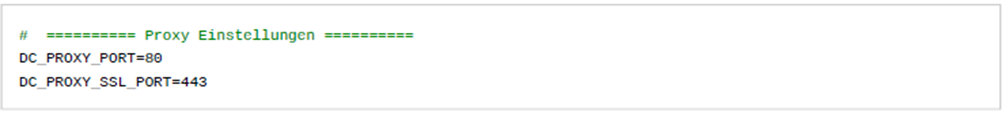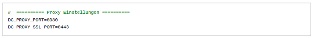 It is not necessary to specify the port in this case, because the browsers automatically add port 80 or port 443 for HTTPS, without this being displayed. If the standard ports on the computer to be installed are already in use, the smartWARE Evaluation can be run on any other free ports. To do this, the ports in the .env file must be overwritten. Here is an example: