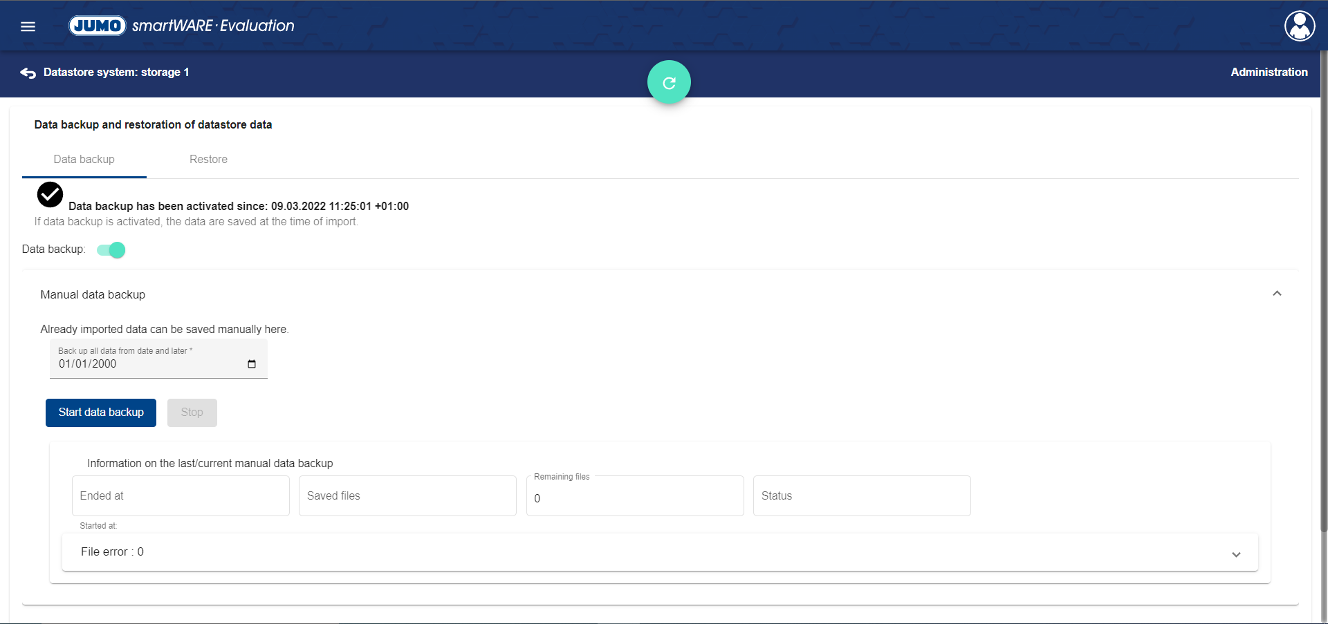 Under the tab sheet "Data backup", the data backup can be activated or deactivated.