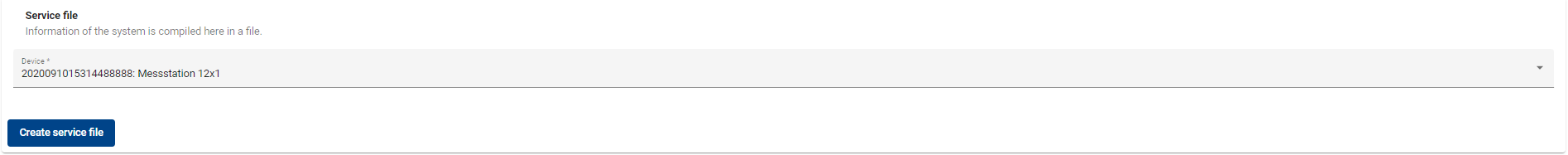 This section is used to create a service file. The drop-down menu allows you to select a device for which to create a service file. By clicking on Create Service File this file will be created. The service file contains, among other things, logs.