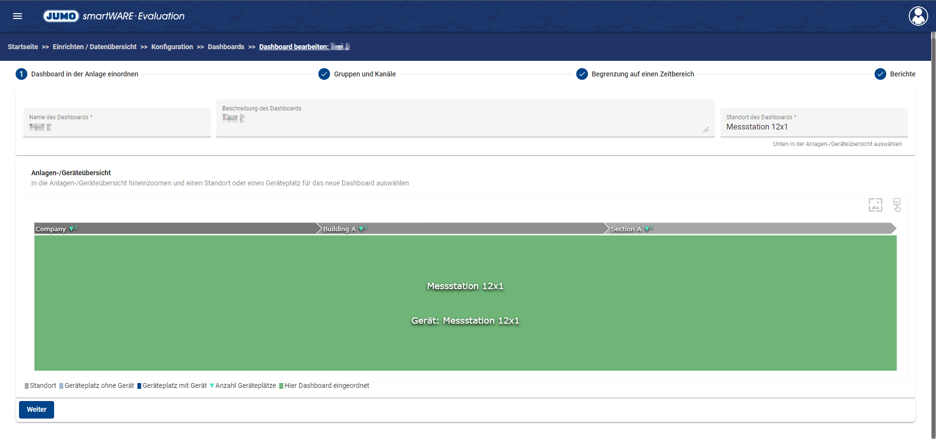 Site of the Dashboard | The site/device location where the Dashboard is located is defined here. |