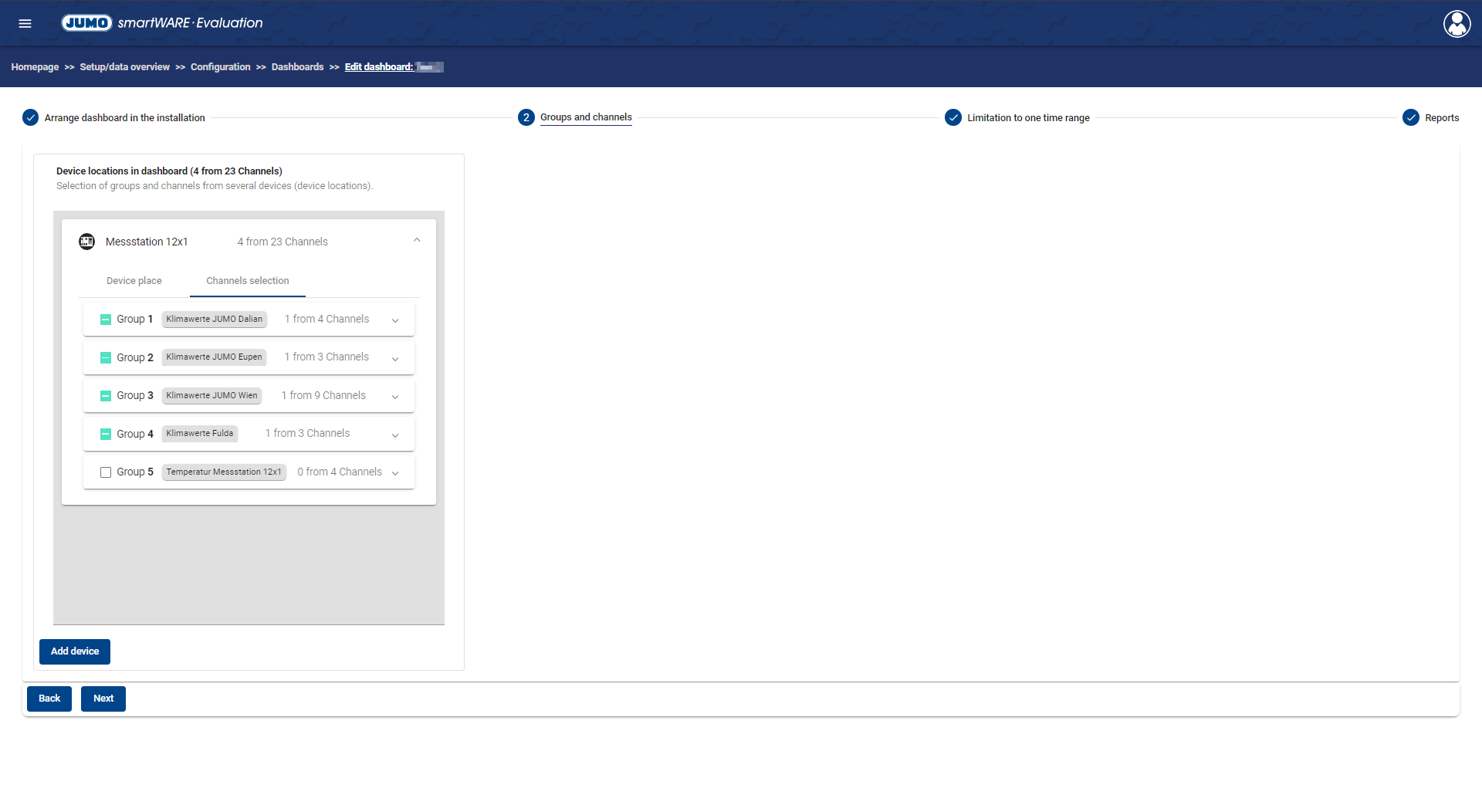Channel Selection | In this tab, channels or channel groups to be displayed in the Dashboard can be selected for each device. |