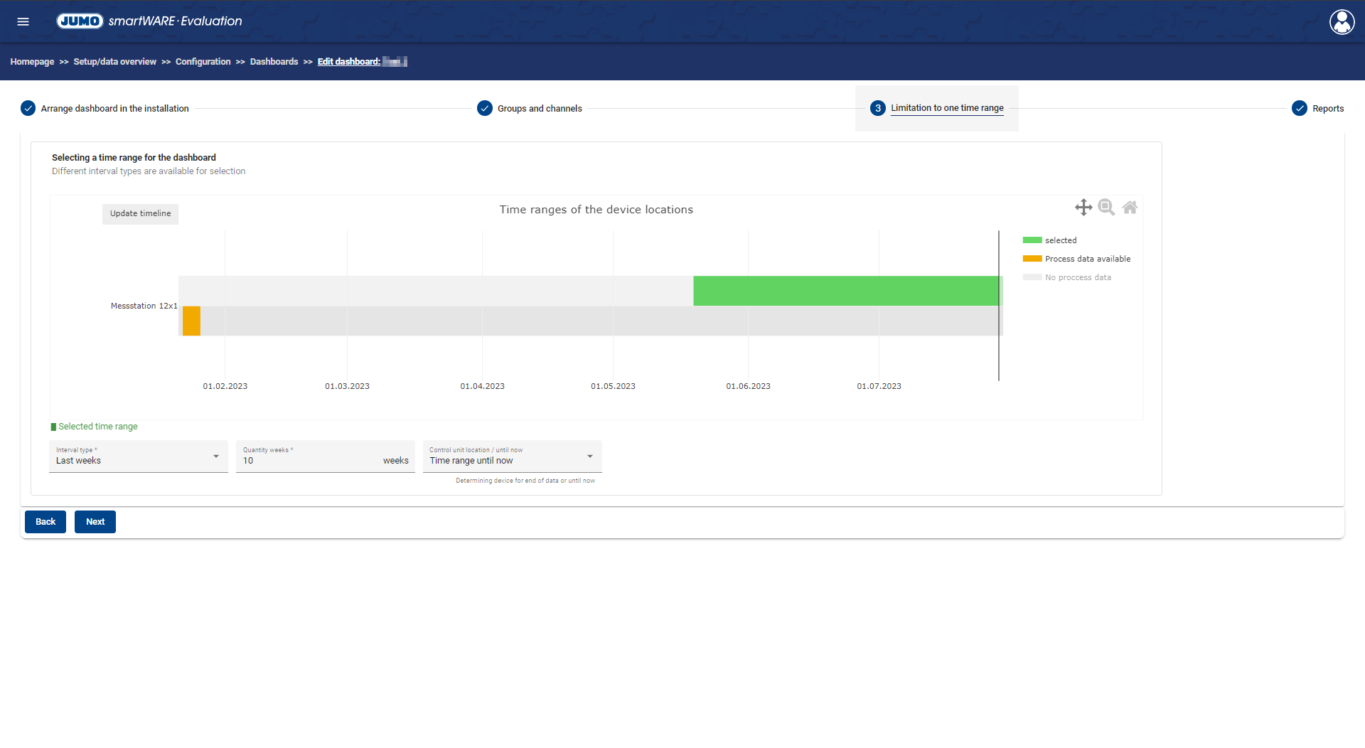Last weeks | This setting allows you to define the number of weeks by which the time range extends into the past. Here there is also the option to let the time range run until the end of the data of a device or until now, i.e. the current time. |