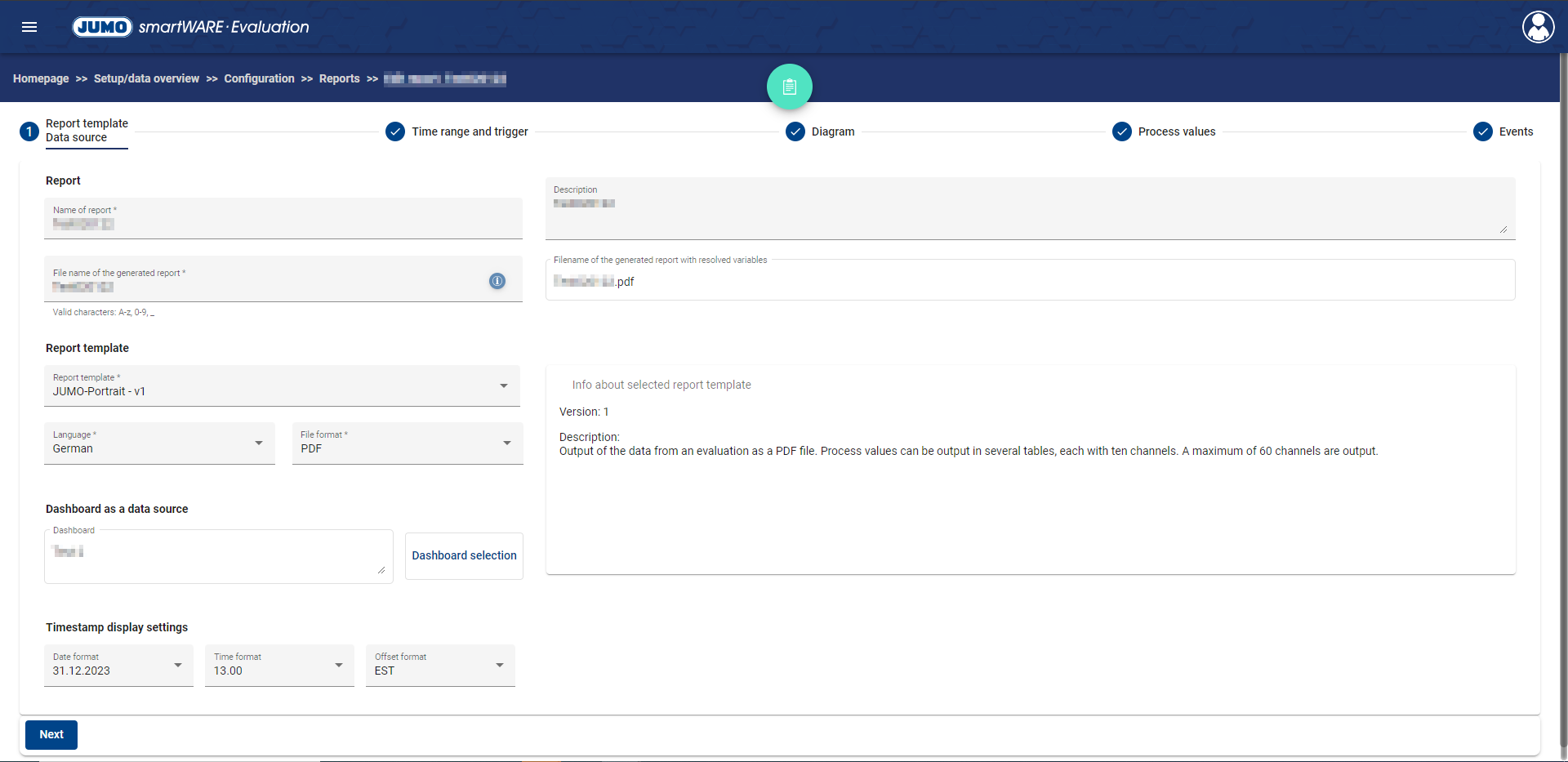 Report Name | Name of the report in the JUMO smartWARE Evaluation |