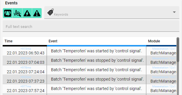 ![]() Fault | All events in the Fault category can be shown and hidden |
