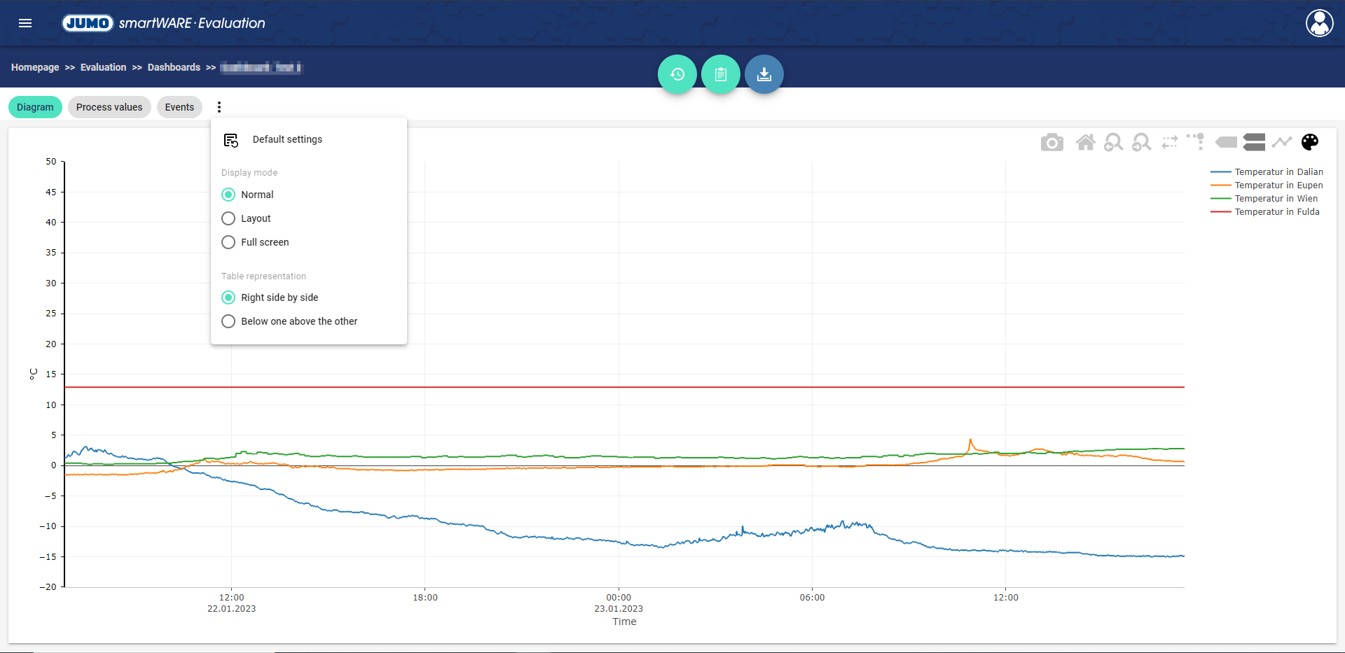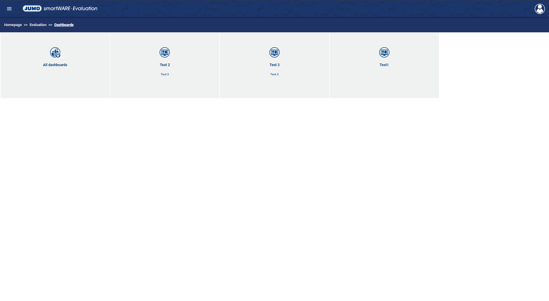 If the name of the Dashboards is known, the Dashboard can simply be selected in the start screen of the Evaluation area.