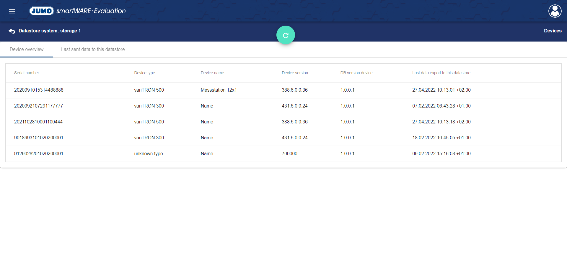 The Devices menu item provides an overview of all devices connected to this Datastore system.