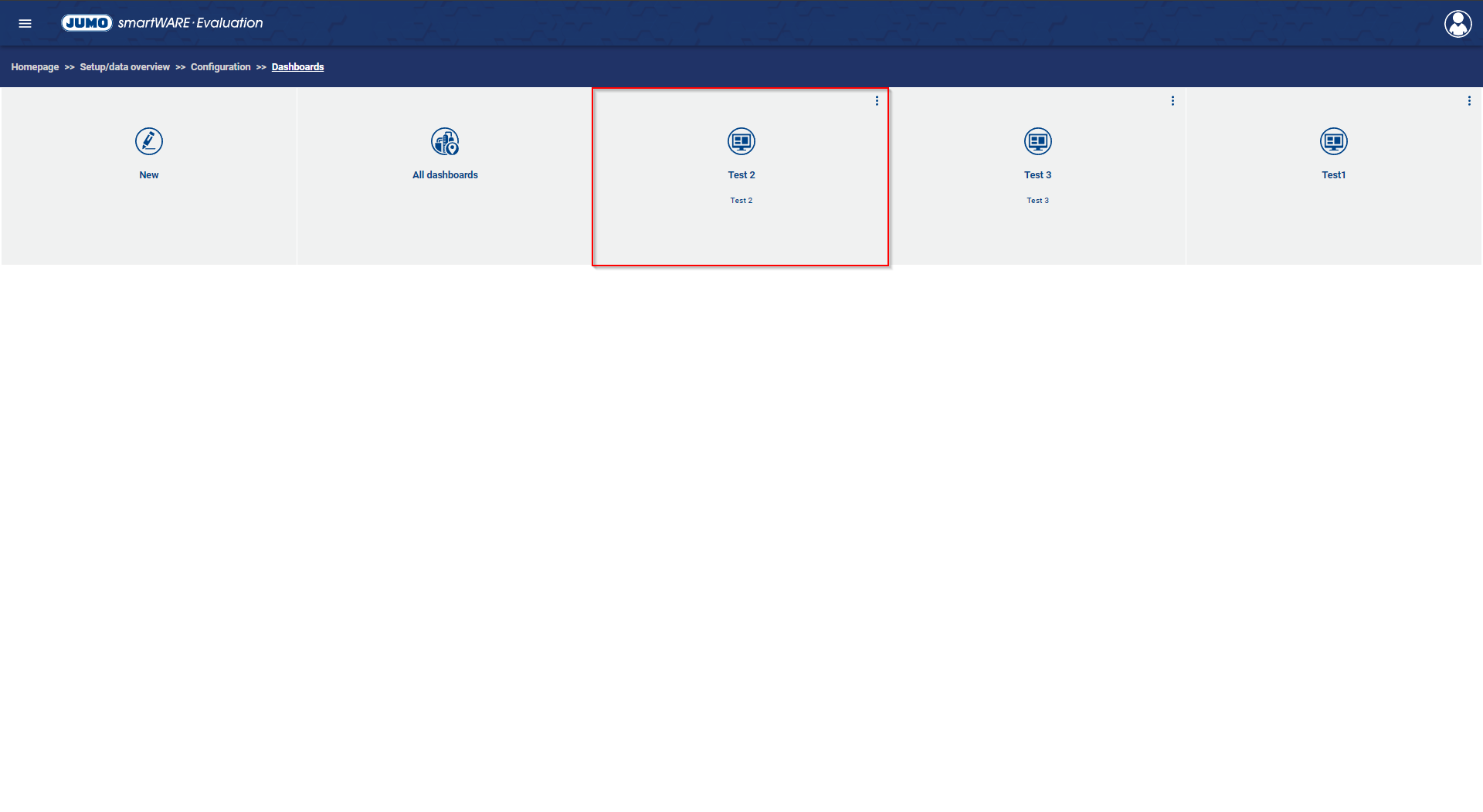Clicking the button "To the Evaluation" opens the Evaluation of the created Dashboard.