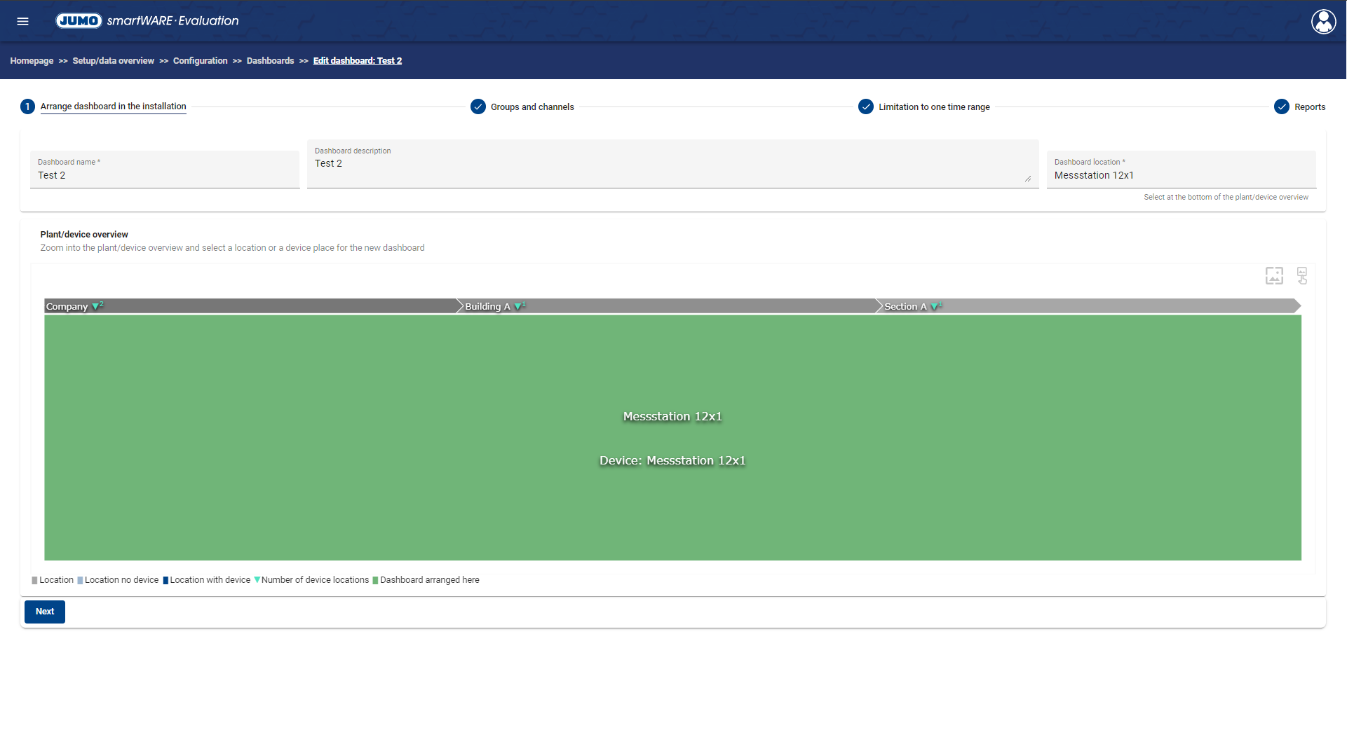 Site of the Dashboard | The site/device location where the Dashboard is located is defined here. |