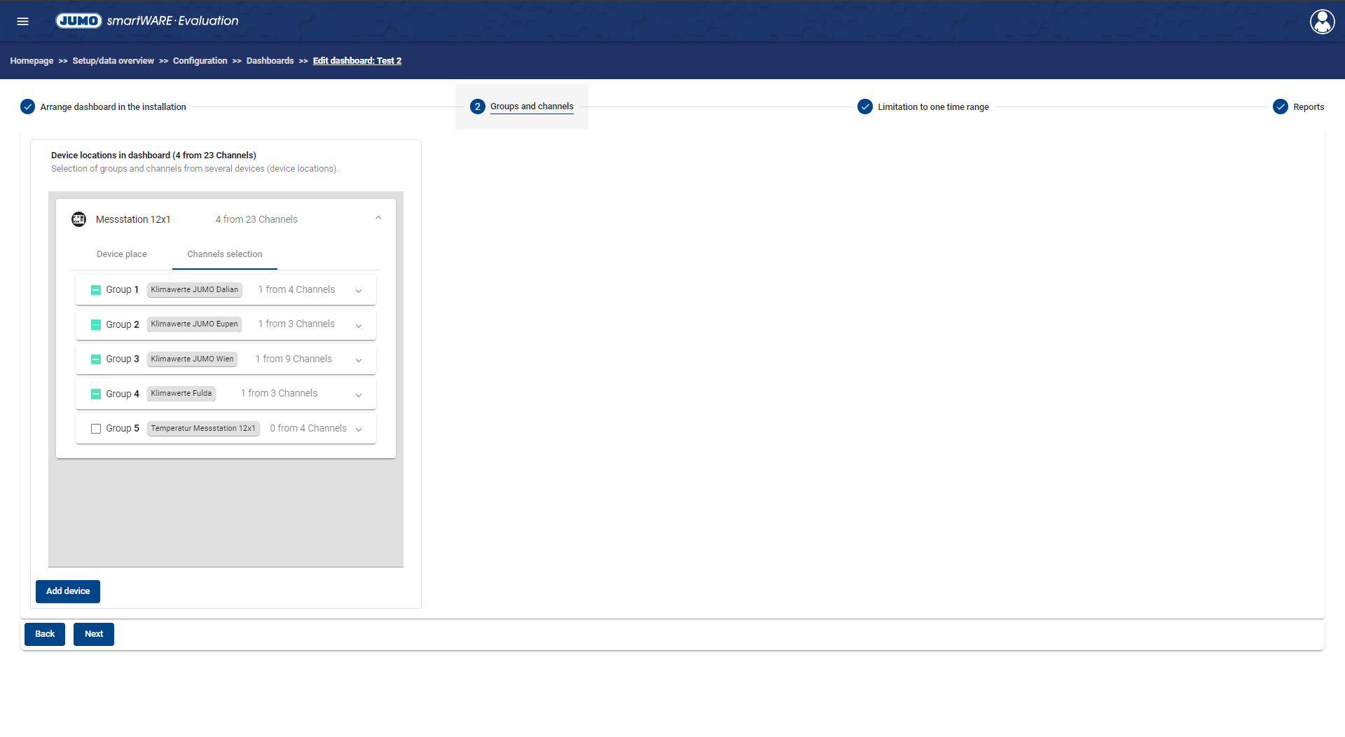Channel Selection | In this tab, channels or channel groups to be displayed in the Dashboard can be selected for each device. |