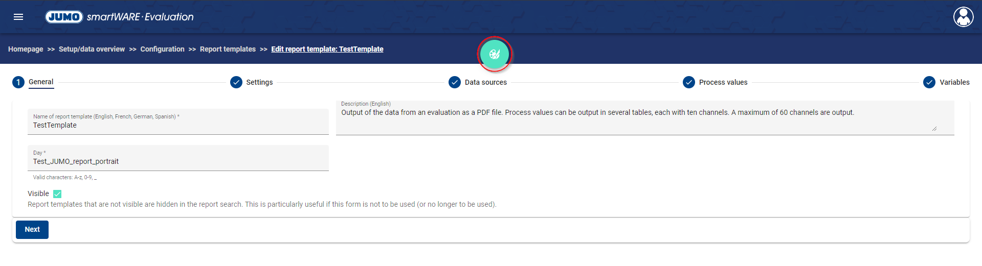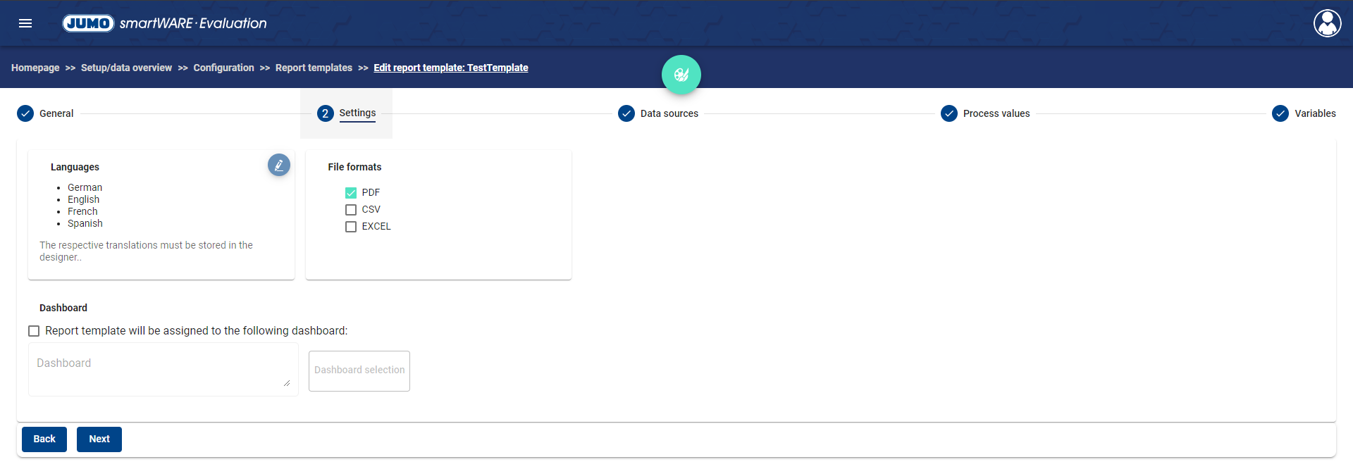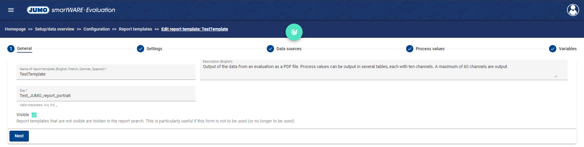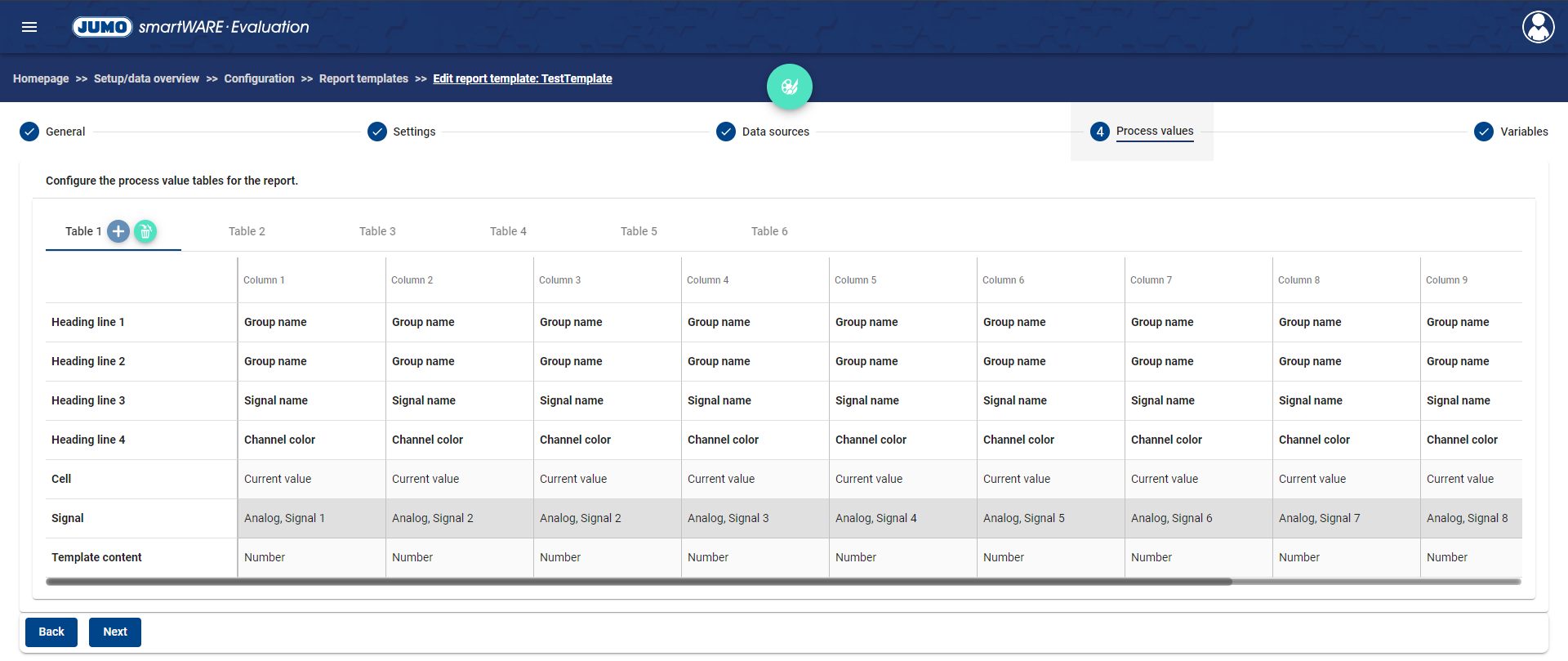 JUMO provides standard templates. These are included in the basic configuration of the JUMO smartWARE evaluation.