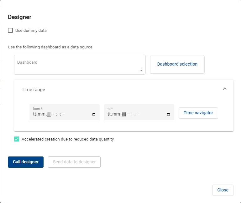It is also possible to speed up the creation by checking the checkbox provided for this purpose, by reducing the amount of data in the designer.