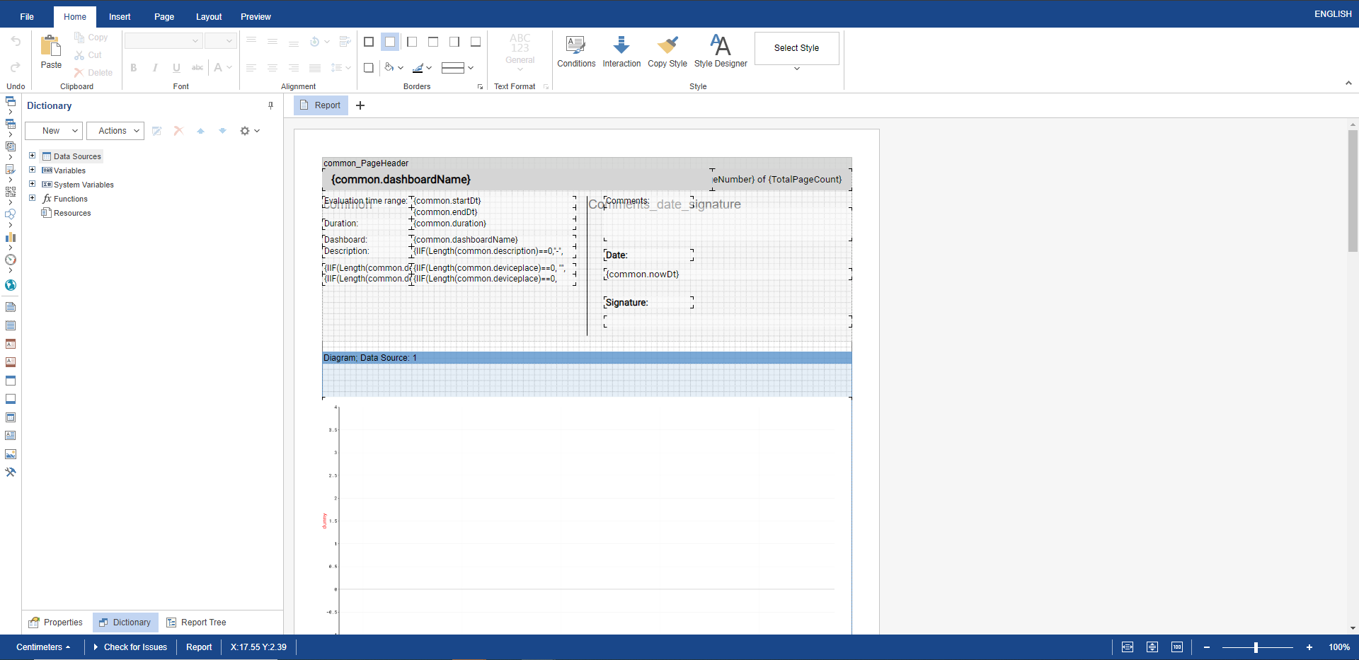 The designer provides detailed configuration and design of your own report templates. Among other things, the company's own logo and CI can be incorporated there. In addition, the diagrams and all other content can be placed within the document as desired.