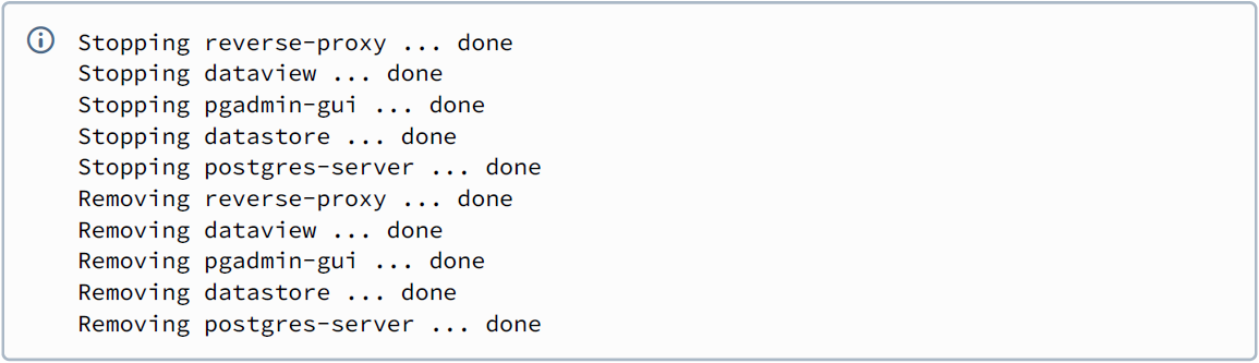 It takes a few seconds for all services to close. The following output is displayed on the screen: