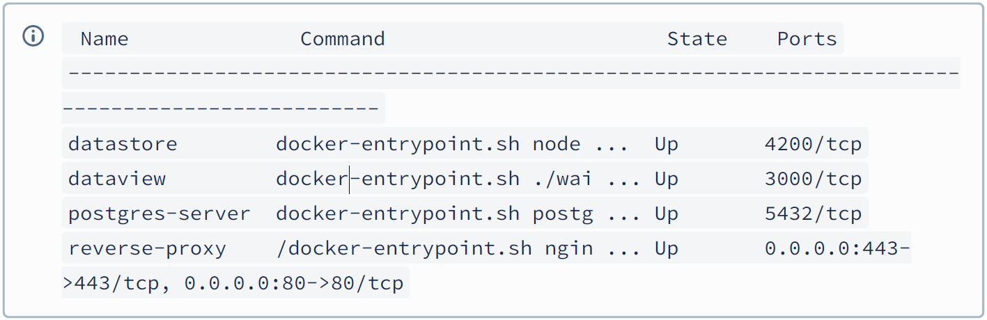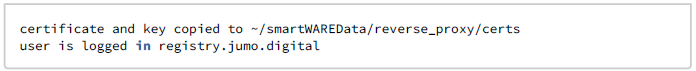 When you call this script for the first time after installation, the software packages (images) are loaded from the JUMO server first. The individual services are then started as Docker containers. You can view the current status of the services by starting another shell script: