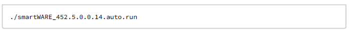 Copy the installation script smartWARE_452.5.0.0.14.auto.run to the user's Linux Home directory, for example "user". So the directory is "/home/user".