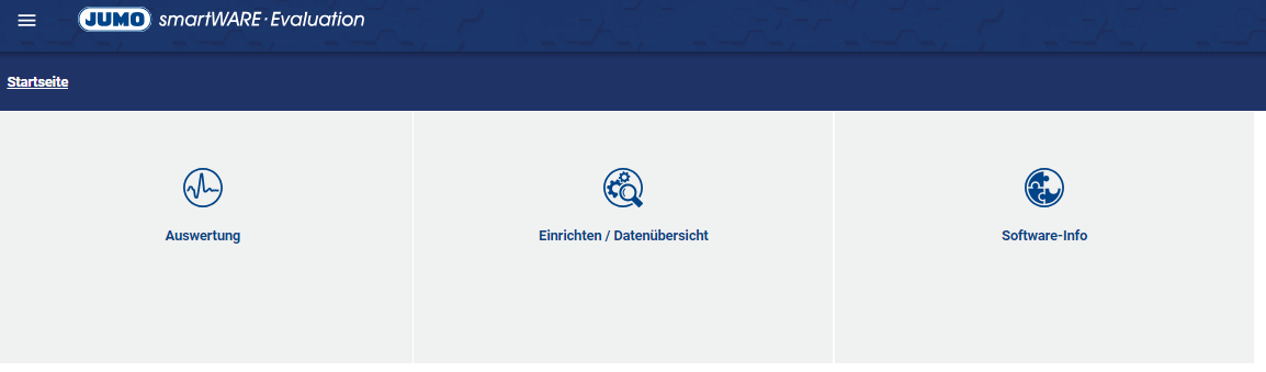 The homepage has been divided into the menu items evaluation, setup/data overview, and software info.