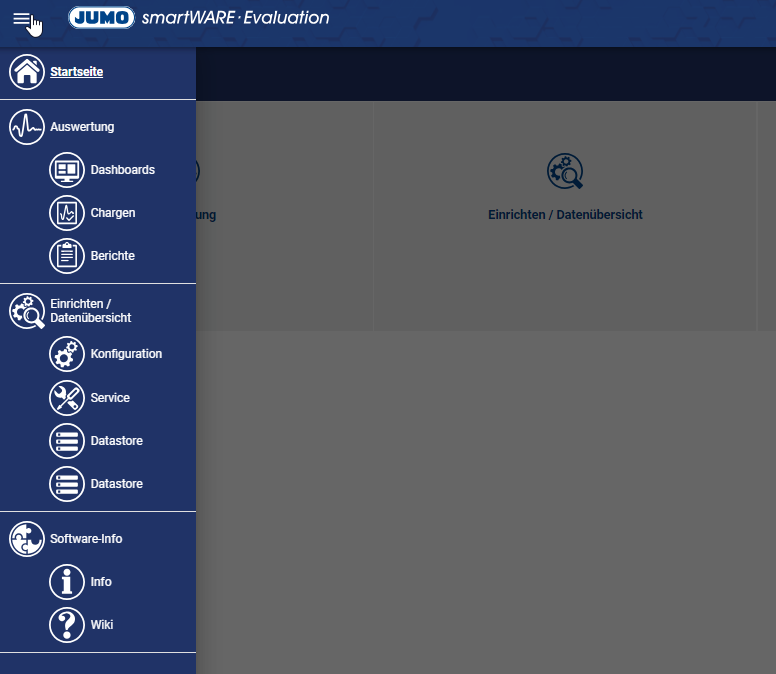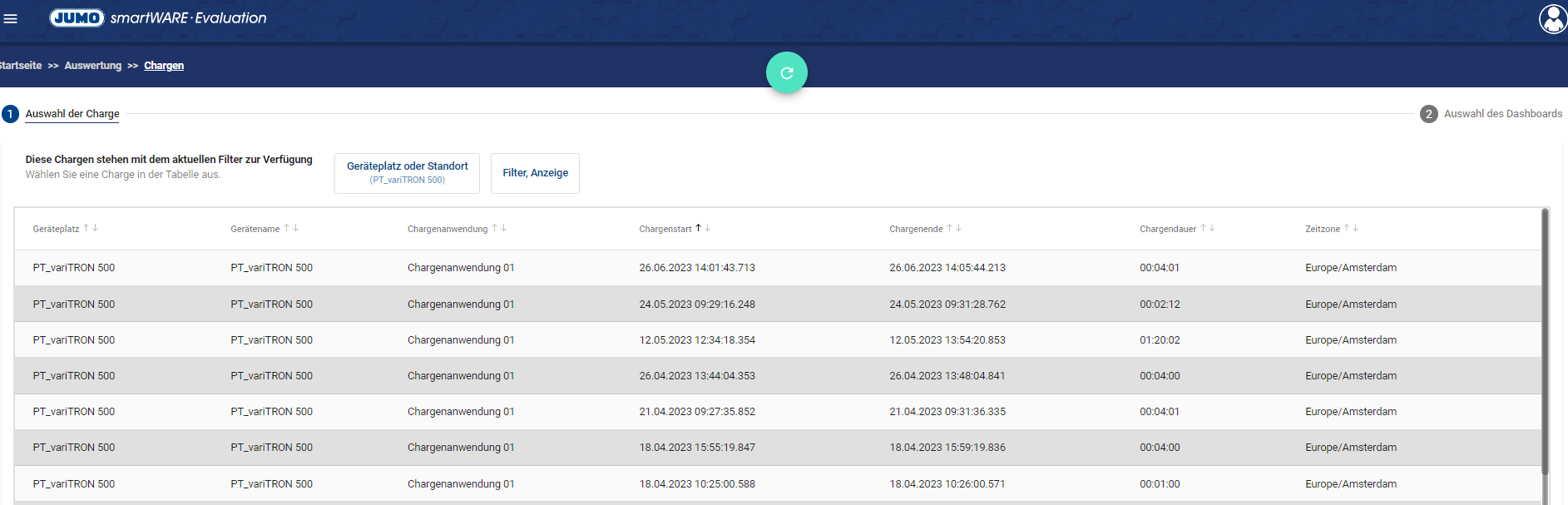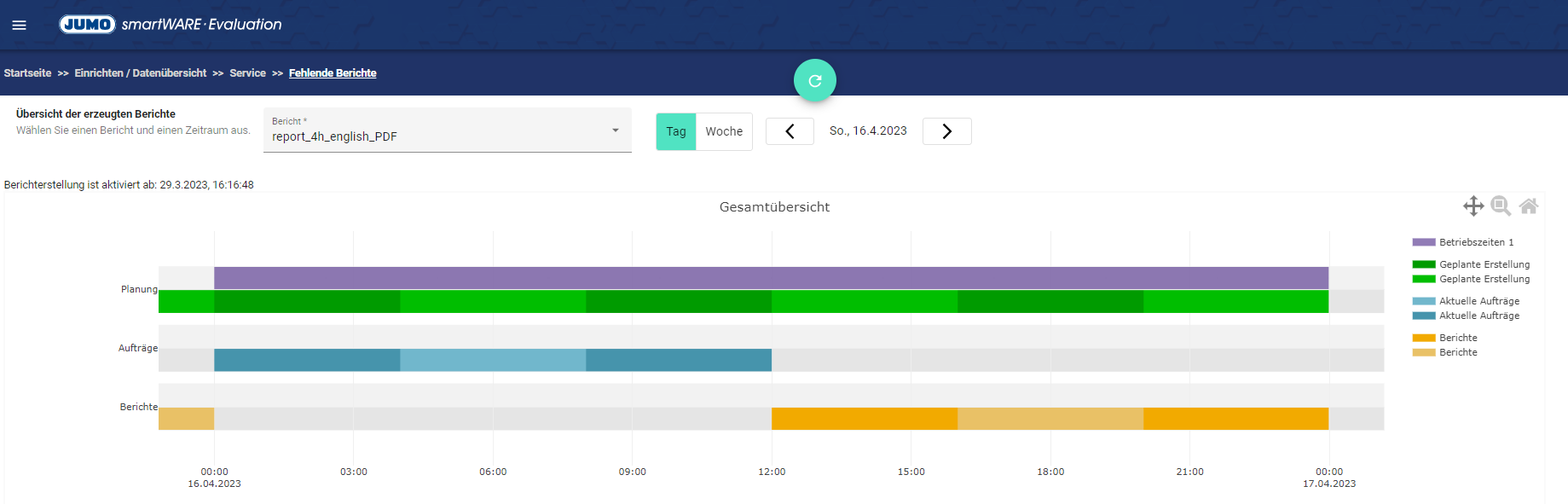The report function has been integrated into JUMO smartWARE Evaluation. The user can view all automatically generated reports in the section "Evaluation > Reports".