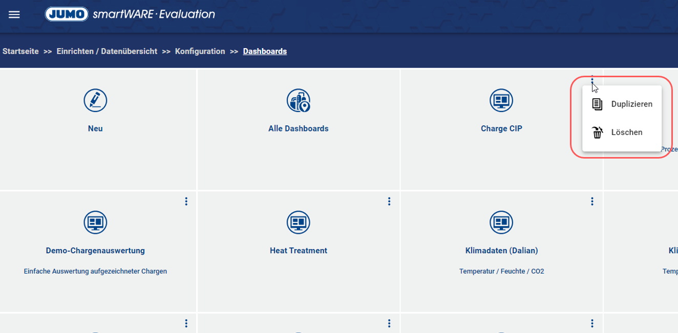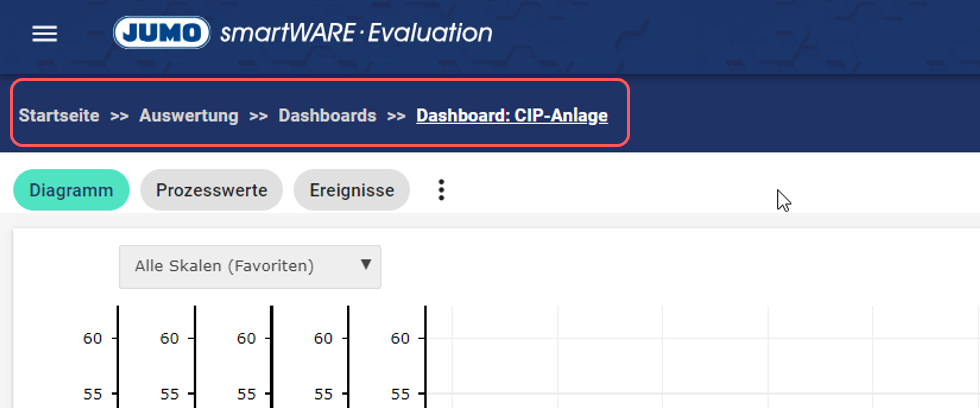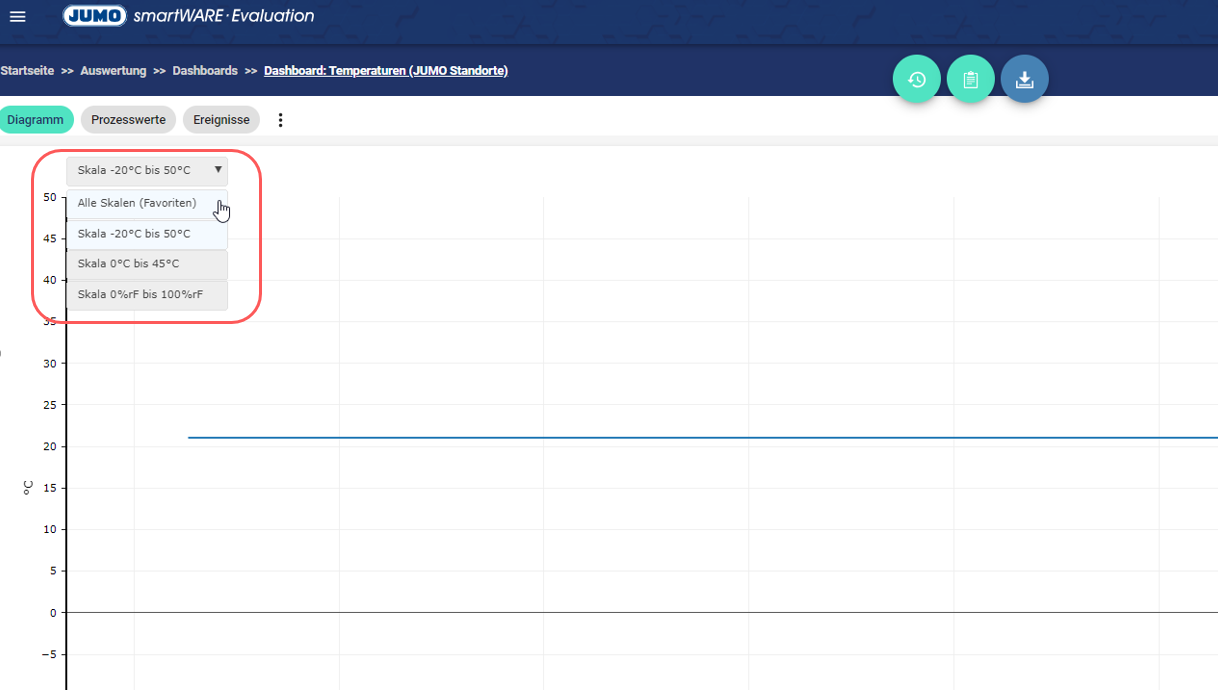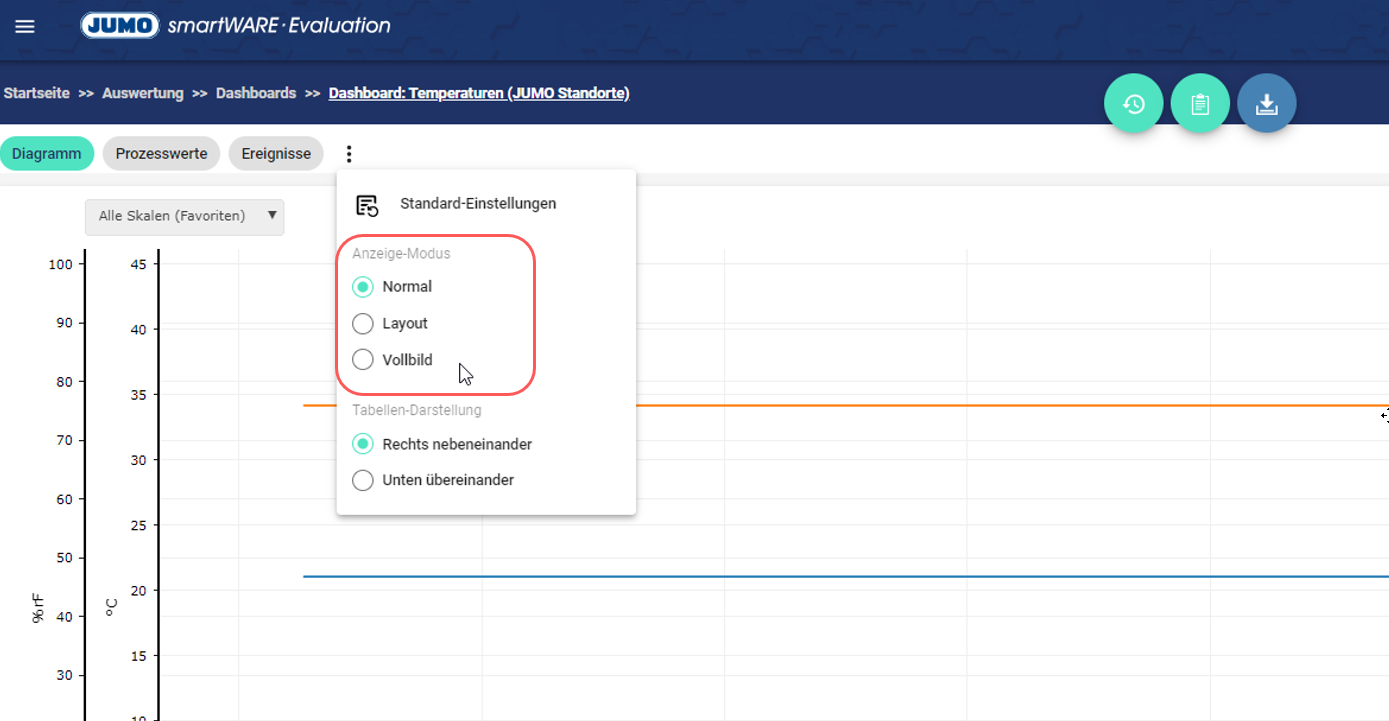 JUMO smartWARE Evaluation can be displayed in full-screen mode using the three dots under the display options or using the keypad with F11.